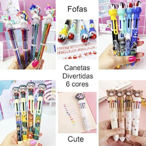 Caneta esferográfica, ela possui 6 cores de tinta com um simples click. Carimbo integrado para você personalizar. Design ergonômico para uma escrita suave e precisa. Tinta de alta qualidade que não borra. Perfeita para estudantes, profissionais, artistas e entusiastas. Feita para durar e com um acabamento elegante. Tinta esferográfica, cores das tintas: preto, vermelho, laranja, verde, azul e roxa. Não é possível a escolha do desenho da caneta.