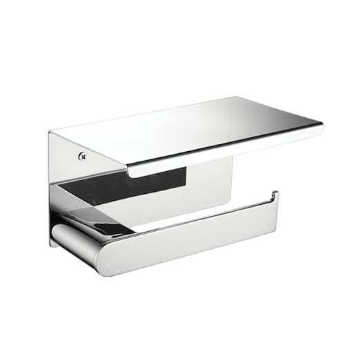 Com acabamento cromado e um suporte integrado, esta papeleira oferece um visual moderno e funcional para o banheiro. Além de manter o espaço organizado, o suporte adicional permite armazenar itens como rolos de papel extra, combinando praticidade e estilo em um único produto.