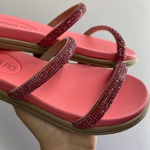 Chinelo Rasteira Beira Rio Strass 8488 105 é um modelo cheio de charme e estilo. Pode ser usada tanto no dia a dia quanto os finais de semana durante passeios e festas. Confeccionado em material sintético, possui detalhes em strass no cabedal, palmilha em Eva e solado emborrachado. Características Material: Sintético Palmilha: Eva Solado: Pvc