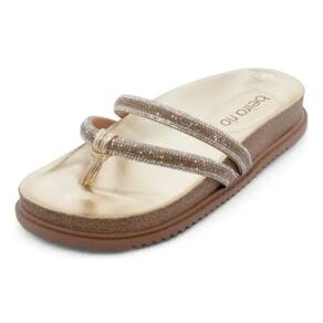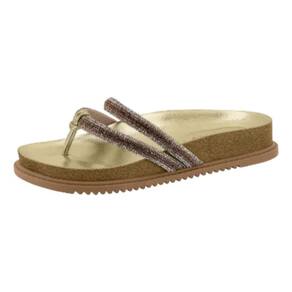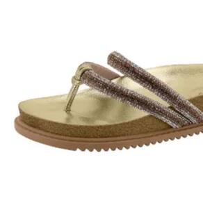 Papete Beira Rio De Dedo Plataforma Pedraria Feminino Dourado 347670 Confeccionada com materiais de alta qualidade, a papete apresenta um design moderno e sofisticado, com tiras superiores cobertas com pedrarias que adicionam um toque de glamour ao seu look. A palmilha anatômica na cor dourada proporciona conforto e bem-estar aos seus pés, enquanto o solado de borracha com frisos antiderrapantes garante segurança e estabilidade ao caminhar.