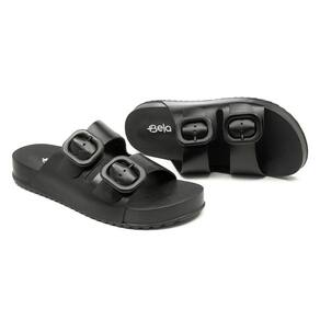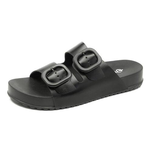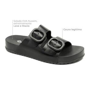Papete Couro Sandalia Rasteira Feminina Fivela Com Regulagem - 34 - Preto