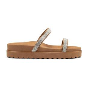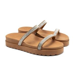 Papete Feminina Com Strass Flatform Sandália Rasteira Brilho - 35 - Marrom