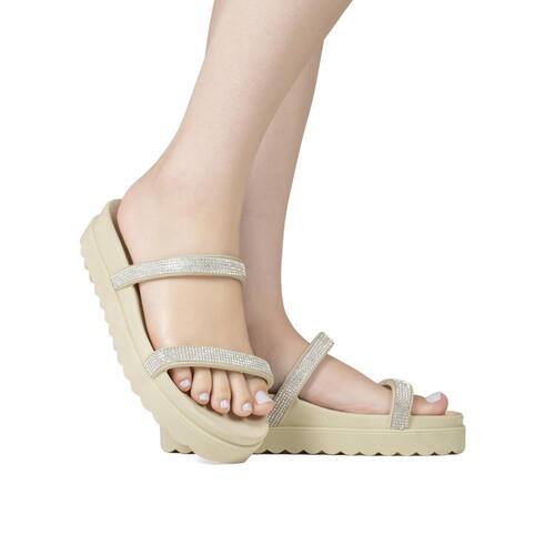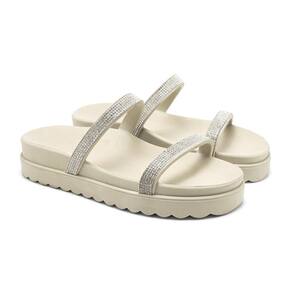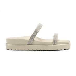 Papete Feminina Com Strass Flatform Sandália Rasteira Brilho - 37 - Branco
