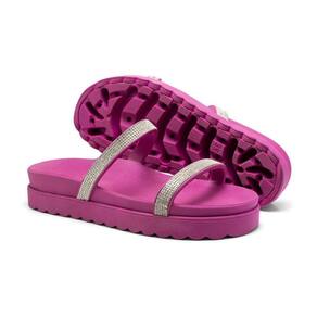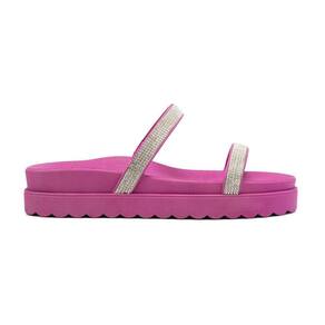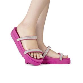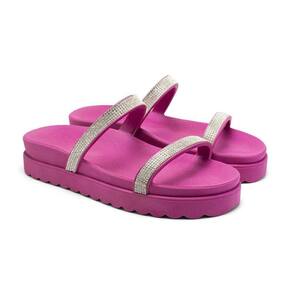 Papete Feminina Com Strass Flatform Sandália Rasteira Brilho - 35 - Rosa
