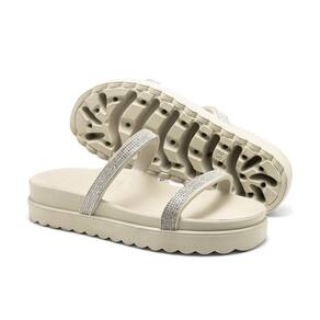Papete Feminina Com Strass Flatform Sandália Rasteira Brilho - 36 - Branco