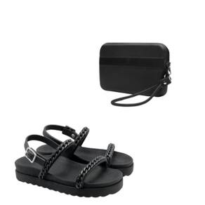 Papete Feminina Sandália Corrente + Carteira Kit 2 Peças - 38 - Preto