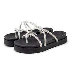 Papete Feminina Sandália de Dedo Strass Casual - 34 - Preto