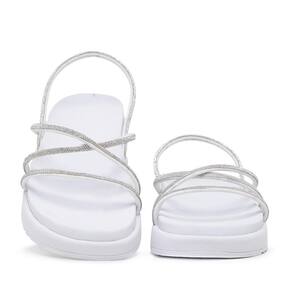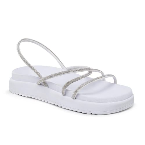 Papete Feminina Strass Brilho Tiras Confortável Moderno - 40 - Branco
