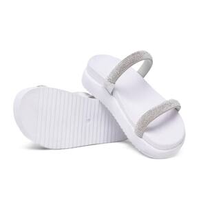 Papete Feminina Tiras Brilho Confortável Verão Dia a Dia - 39 - Branco