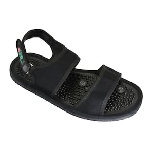 Com 12 magnetos distribuídos de acordo com os pontos da reflexologia podal e da técnica oriental Do-In, as sandálias favorecem o equilíbrio energético do organismo, contribuindo para a harmonização dos fluxos vitais.