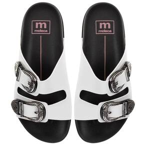 Papete Moleca Duas Tiras Fivela Feminina Branco Preto 322240