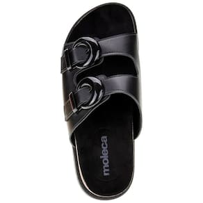 A Papete Moleca Plataforma Casual Feminina Preta é confeccionada em material sintético de alta qualidade, com duas fivelas na parte superior que são usadas para o ajuste do calçado e seu solado é revestido por borracha, com estilo tratorado com altura aproximada de 3,0 cm.