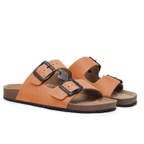 Papete Sandalia Com Fivela Regulavel de Couro Solado PVC Resistente Trabalho Passeio - 44 - Laranja
