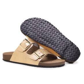 Papete Sandalia Com Fivela Regulavel de Couro Solado PVC Resistente Trabalho Passeio - 37 - Mostarda