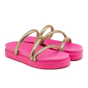 Papete Sandália Feminina Tiras com Brilho Casual - 39 - Pink