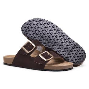 Papete Sandalia Retro Couro Anatomica Fivela de Metal com Regulagem da Moda Verao - 35 - Marrom