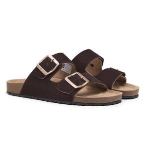Papete Sandalia Retro Couro Anatomica Fivela de Metal com Regulagem da Moda Verao - 44 - Marrom