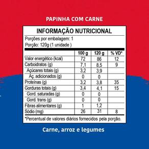 Papinha Papapá Carne, Arroz e Legumes A Papinha Papapá de Frango, Grão-de-bico e Vegetais é uma refeição completa que contém os 4 principais grupos de alimentos, de textura cremosa e ideal para consu