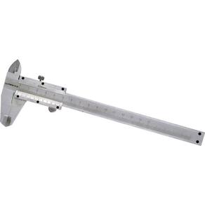 Paquímetro em aço cromado com capacidade de medição ate 300 mm com precisão de 0,02 mm. Graduação em milímetros. Indicado para medições precisas de pequenas pecas e objetos em geral.