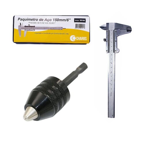 Paquímetro De Aço 6 Pol (150mm) Profissional + Mini Mandril com Haste de 1/4 - CHARBS