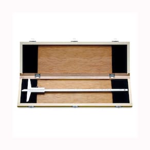 Paquímetro de Profundidade 0-150mm. Graduação Sup/Inf: 0,05. Exatidão (mm): 0,05. Fabricado em: Aço Inox. Acompanha: Estojo de madeira para acomodação e transporte.