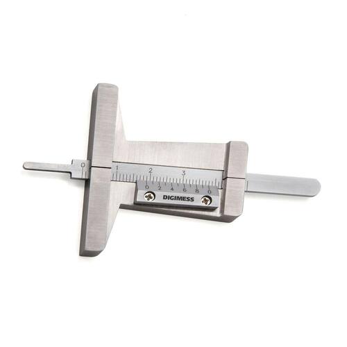 Paquímetro de Profundidade para Sulcos de Pneus Capacidade 30mm Digimess 100.200M- Para medições de profundidade de sulcos de pneus,- Base de apoio de 55mm,- Dimensões da vareta de profundidade de 2x13mm,Especificação técnica- Capacidade: 30mm,- Exatidão: 0,1mm,- Graduação de 0,1mm,- Marca: Digimess,- Código: 100.200M