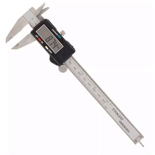 Paquímetro digital é feito de aço inoxidável e funciona através do deslocamento do cursor móvel sobre a haste da ferramenta, mostrando as medições no display LCD. Acompanha caixa plástica com espuma de borracha no interior, indicada para armazenamento do produto e minimizar os danos em caso de golpes e quedas.