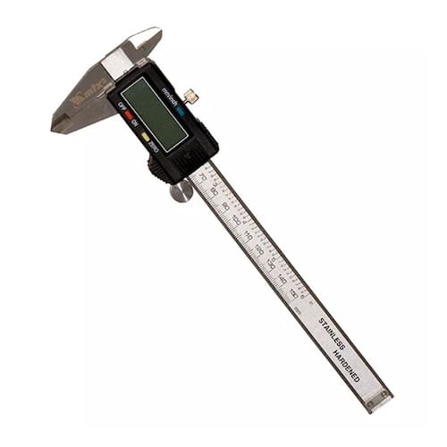 Paquímetro Digital 150mm 6 polegadas MTX Resolução 0,01mm 0.0005 pelagadas Paquímetro feito de aço inoxidável ferramenta Deslocando cursor móvel sobre o haste da ferramenta as medições são mostradas no display LCD Fonte de alimentação é uma bateria de 1,5 V, tipo SR44 Erro de medição é 0,02mm em 100mm e 0,03mm em 100 a 200 mm Embalado em uma caixa de plastico com espuma de borracha que cobre o interior, excluindo a possibilidade de danos devido a golpes e quedas Mede em MM e em Polegadas Inclui 1 estojo e 2 baterias SR44 Ean: 7899612718228