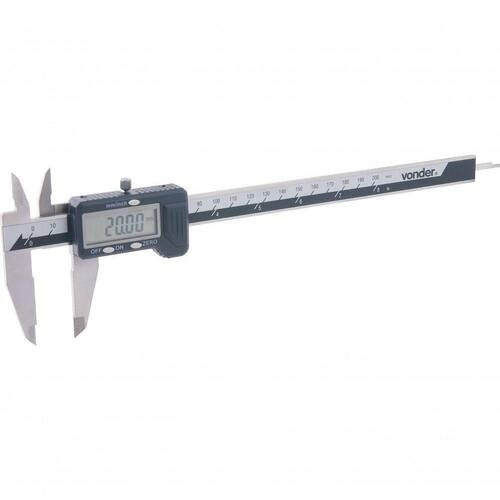 Capacidade do paquímetro: 0 - 200 mm / 0 - 8