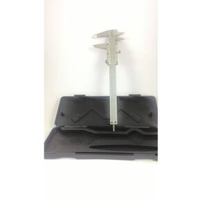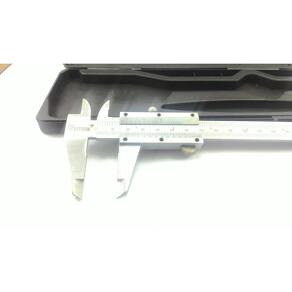 Fabricado em aço carbono resistente. Possui ótima precisão. A ferramenta ideal para aplicações industriais e automotivas O paquímetro em aço 150mm é utilizado para medir com precisão as dimensões de pequenos objetos. Possui vareta para medição de profundidade. Acompanha estojo de plástico para armazenamento do produto.