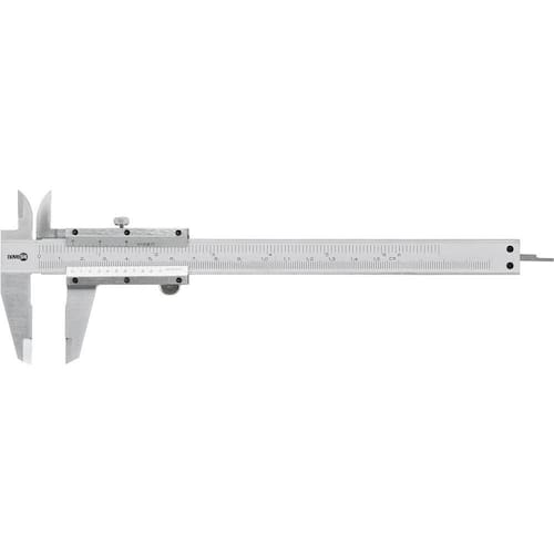 Capacidade do paquímetro: 0 - 150 mm / 0 - 6" Graduação : 0,05 mm - 1/128" Exatidão do paquímetro: +/- 0,05 mm Material das faces de medição do paquímetro: Aço carbono Material do corpo do paquímetro: Aço carbono Altura do bico do paquímetro: 40,0 mm Comprimento total do paquímetro: 231,0 mm Altura total da orelha do paquímetro: 21,0 mm Largura da escala do paquímetro: 16,0 mm
