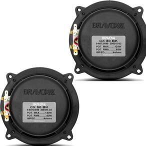 O Par de Alto Falante Bravox CX50 BK 5 Polegadas ideal para som interno que garante mais qualidade na reprodução das suas músicas preferidas e oferece maior destaque às frequências subgraves. Além disso, você terá um alto falante com design moderno. Disponível: - 01 Par Alto Falante 5 Polegadas Características: - Carcaça injetada em termoplástico - Cone injetado em polipropileno - Borda injetada em Santoprene® - Bobina móvel em duralumínio - Incluso divisor de frequência para tweeter - Tweeter Neodymium com diafragma de Mylar Ficha Técnica: - Modelo: CS50 BK - Código: 9-6073/049 - Polegadas: 5 - Impedância: 4 Ohms - Sens. Db/w/m 88 - Fo Hz: 95 - RESP.Fq. Hz: 70-20K - WMAX. Watts: 120 - WRMS. Watts: 60 RMS - Altura mm 60 - Diâmetro mm 140 Segurança: - ATENÇÃO. Não utilizar o aparelho com volume superior a 85dB, pois poderá prejudicar a sua audição. Lei Federal nº 11.291/2006 - Por questões de segurança, mantenha o sistema de volume moderado de maneira que possa ouvir o trânsito e veículos de emergência. - Pare o carro antes de realizar qualquer operação mais complexa. Serve para os Modelos e Anos: Universal Importante: - Garantia de 3 Meses - A responsabilidade de instalação e uso fica com comprador, recomendamos ser feita por um profissional especializado. Ean: 7892787019633