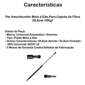 Par de Amortecedores Pistão Mola à Gás para capota de Fibra de Vidro