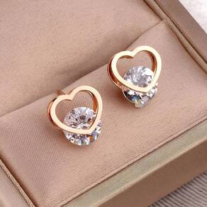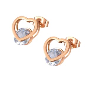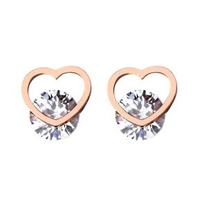 Par de brincos coração celine banhado a ouro rosê em aço inox