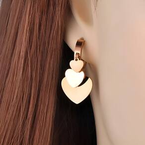 Este Lindo par de brincos com três corações é um charme, simboliza o amor e dá um toque de romantismo, perfeito para presentar a pessoa que mais ama.