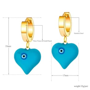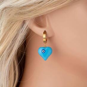 Beleza e proteção se unem nesse brinco azul lindo em formato de coração com olho grego.