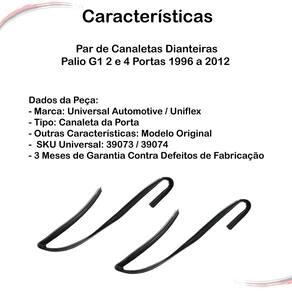 CONTEÚDO DA EMBALAGEM-------------------------------------------------- Par de Canaletas Das Portas - Dianteiras APLICAÇÃO NOS SEGUINTES VEÍCULOS:-----------------------------------------------------------FIAT:- Palio G1 2 e 4 Portas 1996 a 2012- Siena G1 1998 a 2016