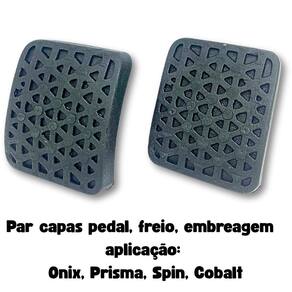 Par de capas para pedal de freio e embreagem compatível com Chevrolet Onix, Prisma, Spin e Cobalt. Fabricadas em borracha de alta durabilidade, ideais para reposição com encaixe perfeito. Cor preta, antiderrapantes, garantem mais segurança e conforto na direção. Instalação simples, sem necessidade de ferramentas.