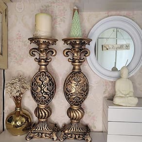 Par Castiçal Flor De Lis Pedestal Decoração Vela Gde 22320 Manxs, um Castiçal Flor de Lis tridimensional em pedestal.Peça maravilhosa para decoração, iluminação e apoiar vela. Um Castiçal de vela do estilo retro. Design criativo com acabamento detalhado, tornando adequado para a maioria das ocasiões. Este castiçal com formato de flor, tem o posicionamento da vela acima da Flor de Lis. Uma peça delicada e ao mesmo tempo rouba a cena de qualquer ambiente. Castiçal perfeito para colocar em estantes e mesinhas de canto. Além de várias Situações aplicáveis: Casa, festa, Natal. Pode ser para decoração de casa, decorações de festa, adereços fotográficos,jardim etc. Pode ser para arranjo de flores também Ótimo para quem quer um ambiente aconchegante e ao mesmo tempo delicado. Perfeito para decoração de mesas.Você pode colocar a bola de flores artificiais em cima do suporte como uma ótima decoração de vaso para dias especiais, especialmente para o casamento. Você também pode colocar velas de cera ou pilar - sem chama - de led, em cima do suporte como um ótimo porta-velas. Feito de material de resina de alta qualidade, durável e seguro. Tamanho aproximado em cm. 11,5 comp. X 9 larg x 33 alt Perfeito para um presente de inauguração ou casamento. Venha Cuidar-se e Decorar Na Mana Om Você recebe Seu Castiçal E Boas Energias Gratidão, Namastê, Tudo de Ohm