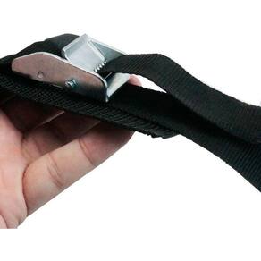 A cinta com proteção para amarração de carga com medida de 5 metros de comprimento e 25mm de largura têm uma ótima resistência pois são confeccionadas em polipropileno e possui uma presilha feita de zamak super resistente a corrosões comparado com latão ou ferro, além de uma proteção extra para evitar riscos com eventual contato da presilha na pintura do veículo. Esta cinta é ideal para quem precisa prender algo com facilidade, o conjunto possui uma resistência suficiente para prender diversos tipos de produtos com segurança como pranchas de surf, bikes, caiaques, cargas, bagagens etc..