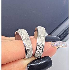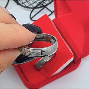 Lindo Anel em Aço Inox Prata Com Oração do Pai Nosso Em Português Acompanha Caixa Em Veludo