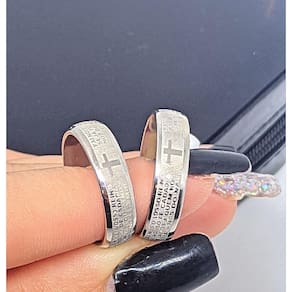 Lindo Anel em Aço Inox Prata Com Oração do Pai Nosso Em Português Acompanha Caixa Em Veludo