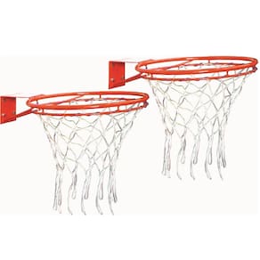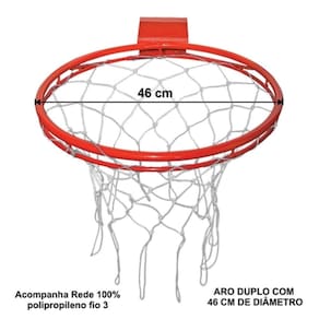 Material: Aço com pintura eletrostática na cor laranja. Itens Inclusos: 2 aros de basquete, 2 redes de polipropileno, 8 parafusos com porcas e arruelas, abraçadeiras de nylon. Fixação: Fácil instalação com kit de fixação completo, adequado para tabelas de basquete.