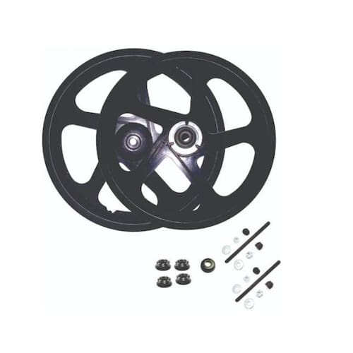 Jogo de rodas aro 16 Nylon. Modelo infantil. Com todos os kit de montagem Flange laterais onde se encaixa no aro para que de firmeza os rolamento Rolamento Eixo completo com ruelas e porcas de aperto Cor Preto OBS não acompanha pneus. Marca: Não Informado Ean: 7899733907891