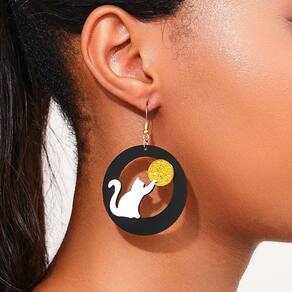 Par de Brincos Argola Preto e Branco Gatos Feminino Grande