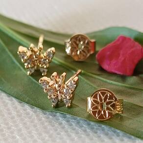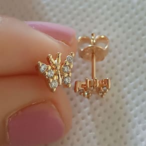 ESPECIFICAÇÕES DO PAR DE BRINCOS BORBOLETA CRAVEJADA ZIRCÔNIA FOLHEADO RONNELLY: