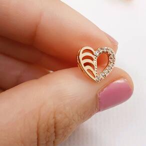 ESPECIFICAÇÕES DO PAR DE BRINCOS CORAÇÃO VAZADO COM ZIRCÔNIA BRANCA FOLHEADO RONNELLY: