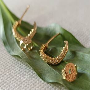ESPECIFICAÇÕES DO PAR DE BRINCOS MEIA ARGOLA CRAVEJADO ZIRCÔNIA FOLHEADO RONNELLY:
