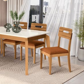 Tenha o máximo de estilo e comodidade em todos os momentos com a Cadeira Lila da Linha Sala de Jantar Premium da Kappesberg. Perfeita para compor seu ambiente com beleza e modernidade, ela é produzida em estrutura resistente, de madeira de eucalipto, garantindo mais durabilidade. Entregue montada e suportando até 120kg, ela combina com todas as ocasiões. Com medidas de 92cm de altura, sendo 49cm a altura do assento, 48cm de largura e 54,5cm de profundidade, para mais comodidade, o assento é estofado com espumas certificadas e recoberto com tecido bouclé terracota, garantindo um toque suave e gostoso, deixando sua sala de jantar ainda mais completa. O destaque fica para o encosto, com formato oval, permitindo um encaixe perfeito com as costas, além do acabamento amadeirado e puxador, facilitando o manuseio e garantindo um acabamento único.