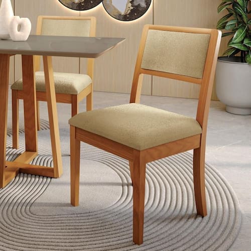 Assento: Espuma | Cor: Boucle Bege | Encosto: Almofada lisa | Espuma: Densidade 33 | Matéria-prima: Eucalipto | Altura da cadeira: 92,5 | Largura do assento: 44,5 | Profundidade do assento: 55,5 | Quantidade de cadeiras por conjunto: 2 | Requer montagem: Não